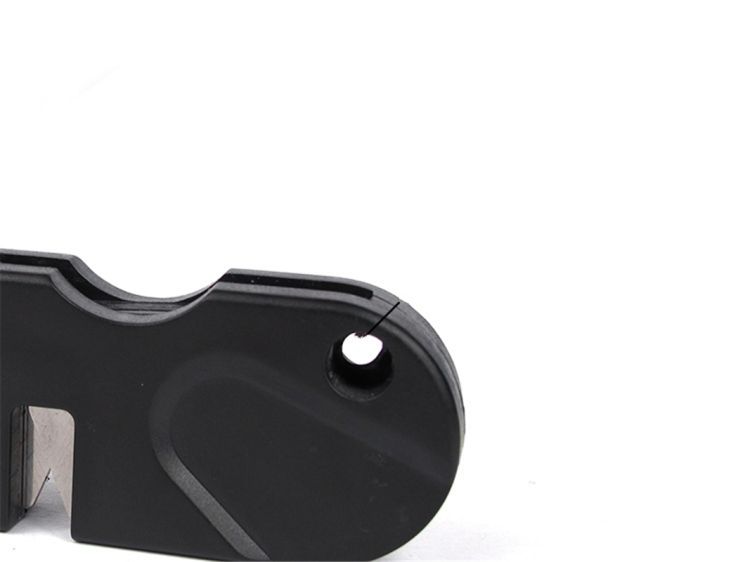 Left-handed sharpener placed on the desktop, other handheld knife, right hand on the V-groove edges, the knife a little harder to pull back, pull about 4-5 times, the blade can be sharp.