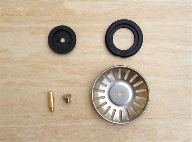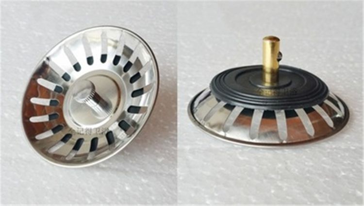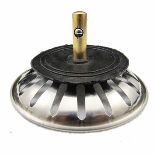 Replacement kitchen sink strainer waste plug chrome on stainless steel.