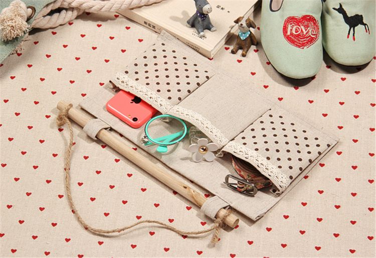 Hanging storage bags with 3 pockets, easy to organize your various small things such as phone, keys, comb, Makeup brush etc.