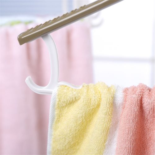 Its top hook is designed to be rotatable in all direction and two side' s hooks are windproof and towel can be fixed under them.