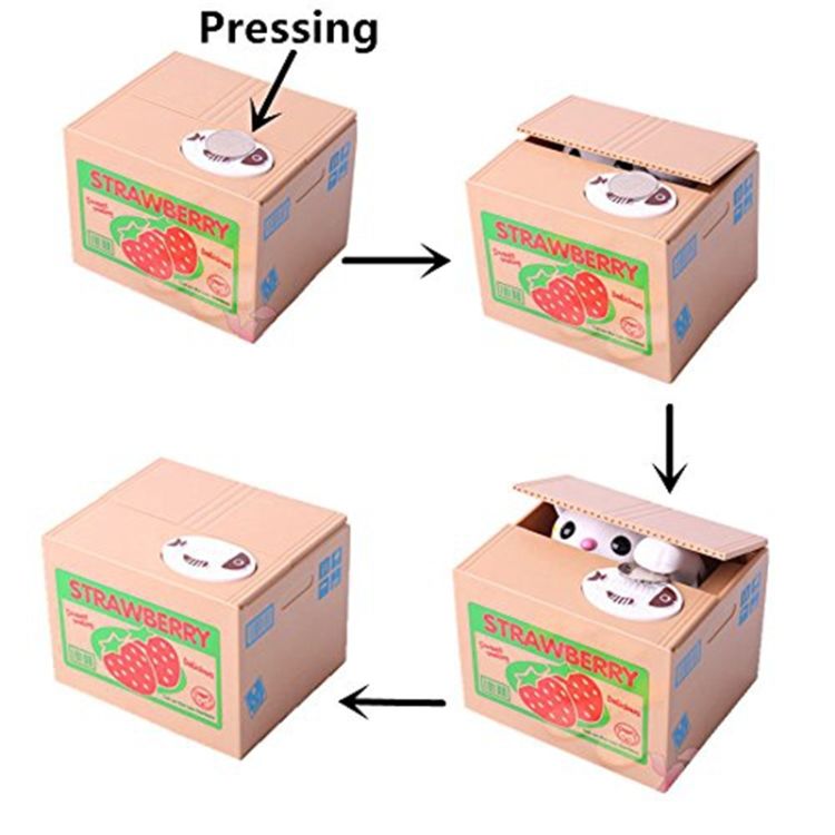5. The animal head rises to jack up the box cover,and its hand will take the coin into the box.