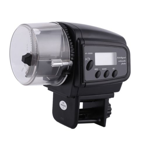 Works with dry loose flakes or pellets. Up to four times setting in one day. The logo Lo displayed on the LCD indicates the power is low.