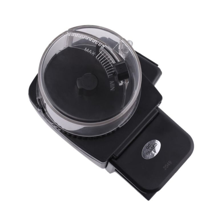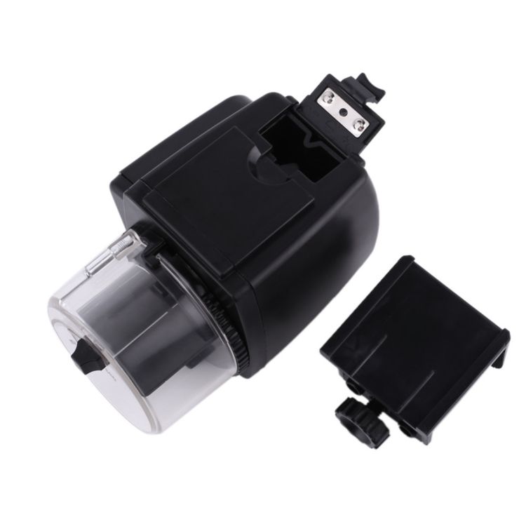 Can fill the container with food without disassembling the automatic feeder. Programmable food volumes and feeding times. By adjusting the slider, you may increase or decrease the amount of food dispensed per rotation.