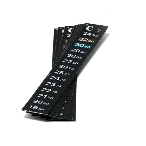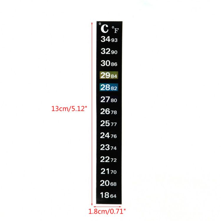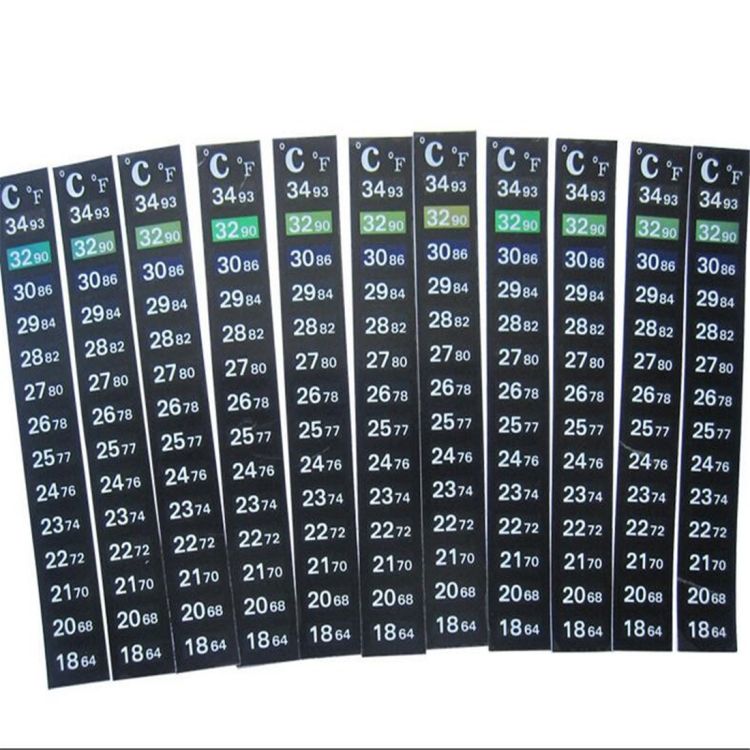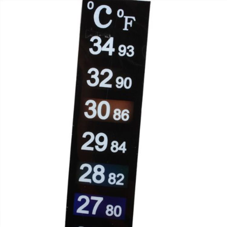 The thermometer changes its color according to the surrounding temperature. If the surrounding temperature is 27°C, then the background of scale mark 27°C will turn colorful and other scale marks remain black.in black.in black.