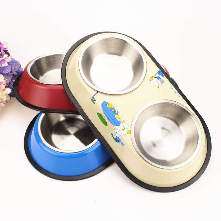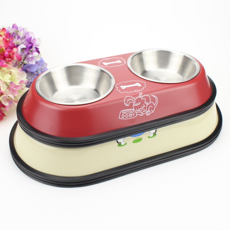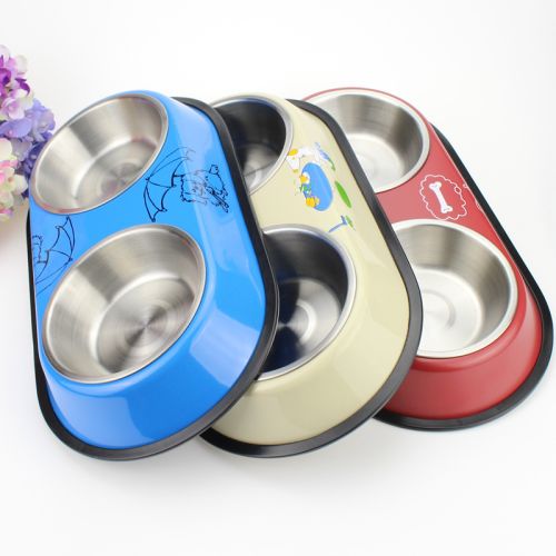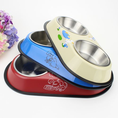 [product introduction]: the use of high-quality paint printing, wear-resisting paint! Thick stainless steel material, surface spray treatment, friction resistance, high temperature, easy to clean, non-toxic tasteless, never rust, durable! The bottom rubber mat edge, the overall design of the ladder, let the dog bowl placed well, not easy to slide! Double bowl design, not only the appearance of generous, bright color, more to meet the needs of feeding and drinking water, is a rare quality pet stainless steel bowl! The whole bowl by a paint base + stainless steel bowl activity composition, removable, cleaning of the dog bowl convenient for everyday use!