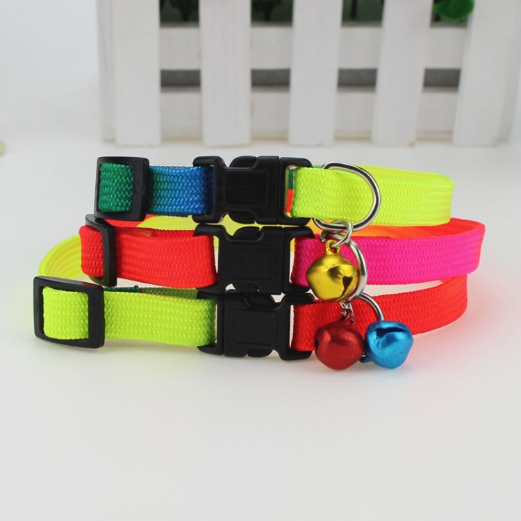 The use of high-quality colorful nylon cord, soft and comfortable, good texture, strong and durable! Beautiful colorful collar, bright colors, beautiful fashion! Plastic buckle, high-quality thick wear convenient, and easy to adjust! Each hung a beautiful bell, the sound is not small, annoying, not because the cats and dogs are too small to step on or hid in a corner to find oh! This is a very high quality of a small dog collar, seven color rainbow design, very beautiful, can you pet foil more beautiful and lovely!