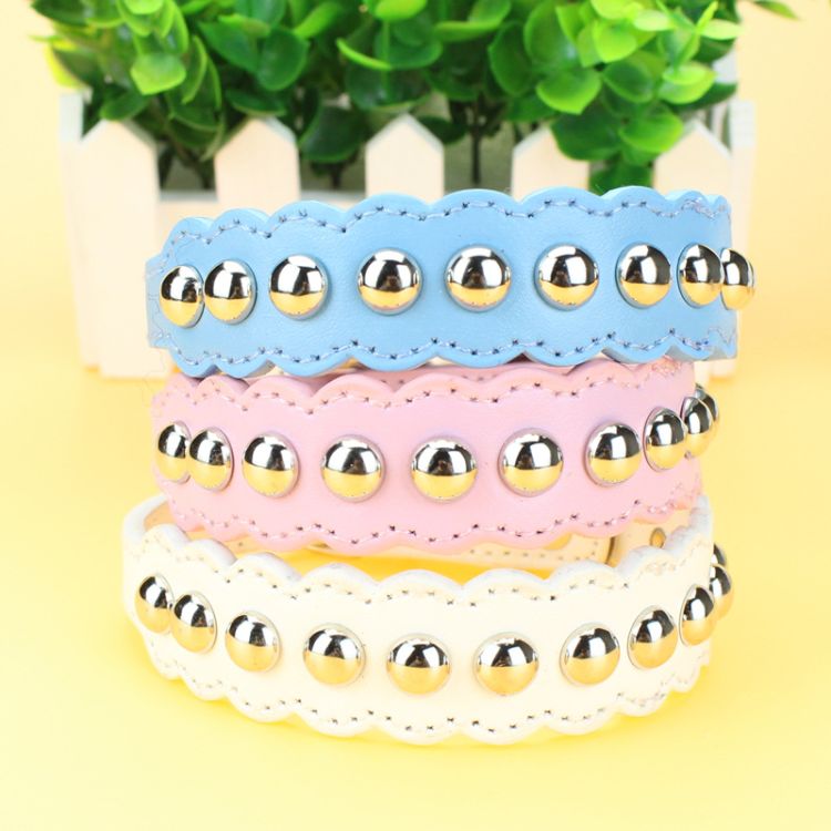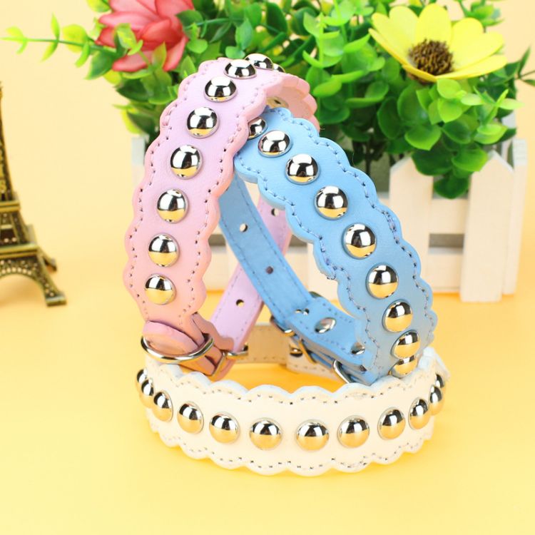 Using high quality PU leather material, mushroom nail made, never fall off! Soft and comfortable, texture is better, strong and durable! The wave shaped design, mushrooms nails, make the collar more vivid and cute fashion, beautiful and generous!! Thicker bold metal alloy buckle, never rust, durable! Wave shape plus mushroom nail design, is the latest and most tide style! Soft PU lattice material, so that the dog to wear more comfortable, textured leather, the trend of handsome dog footprints rivet, so that the dog is more lovely and beautiful!