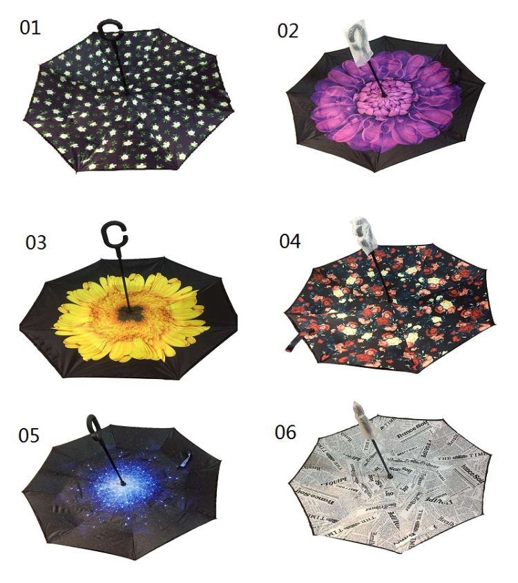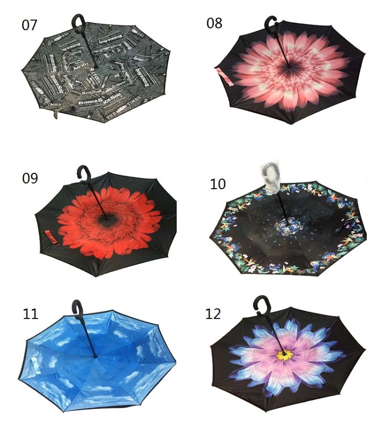 Umbrella Shape:Travel Windproof Reverse Folding Double Layer Inverte C-Hook