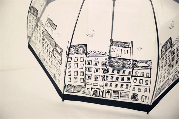 British Building Transparent Romantic Arch Long-handle Creative Umbrella
