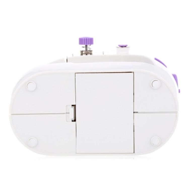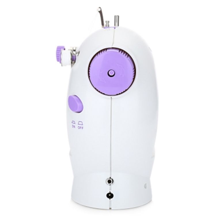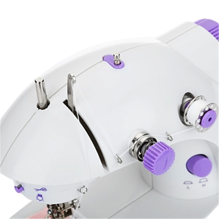 Mini sewing machine offers double threads and perfect stitch control.