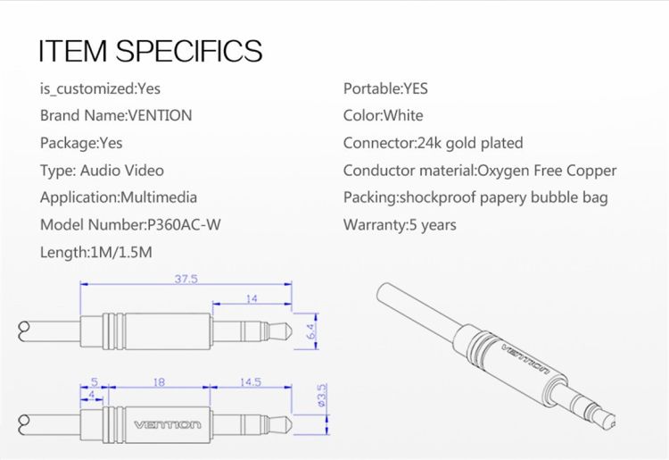 Name: 3.5mm to 3.5mm Adapter Jack Audio Cable