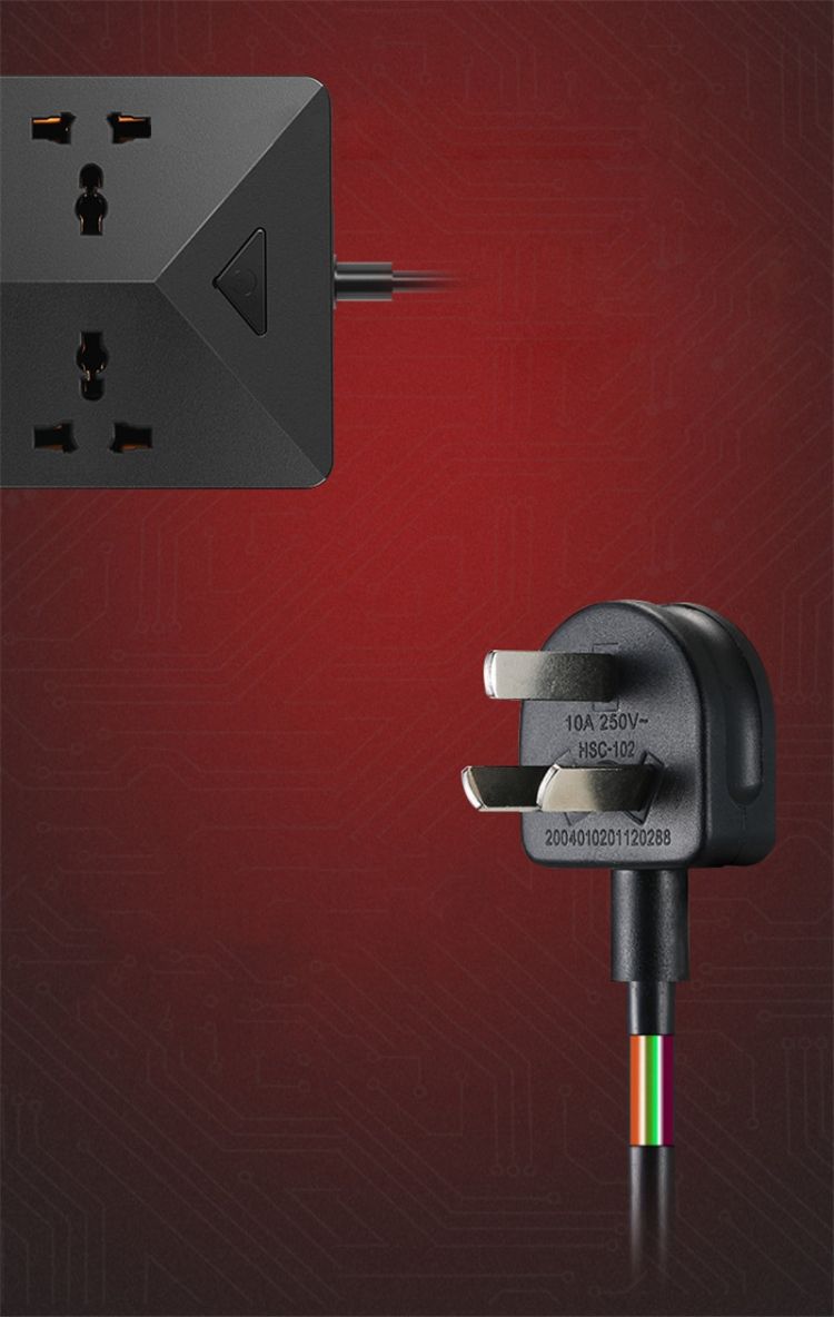 3. '3C' safety certification plug, 3* 0.75mm internal copper standard line, 2500W rated power, PC material that is heat-resistant and not easy to deformation.