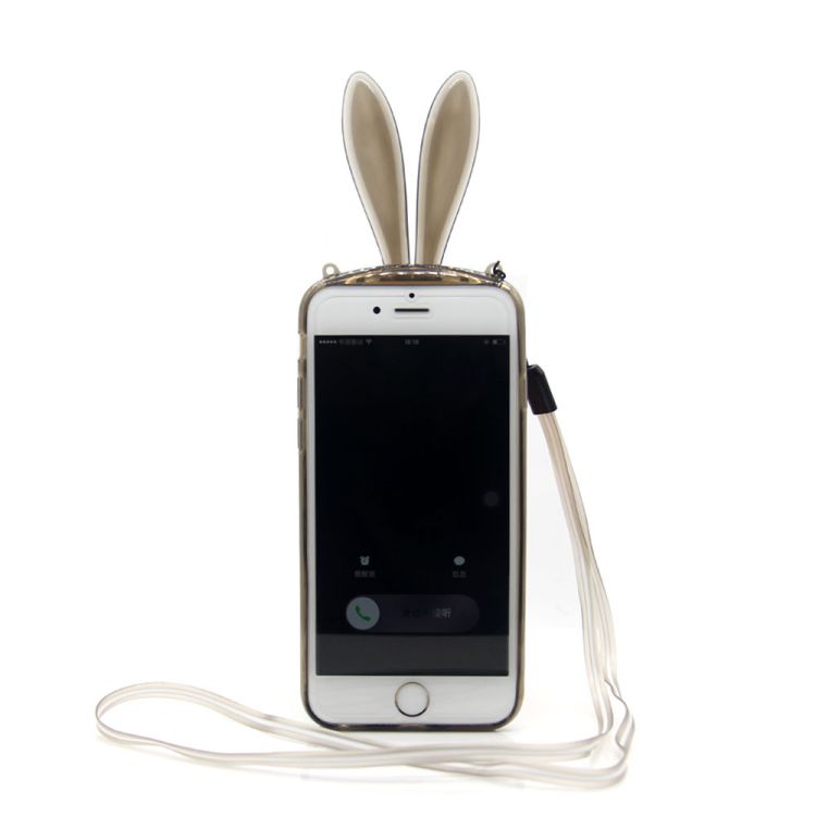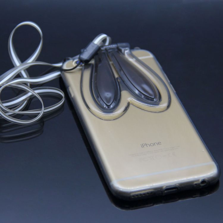 Black 3D Rabbit Ear Phone Cover For iphone 5S 6S 6Plus Hang Rope
