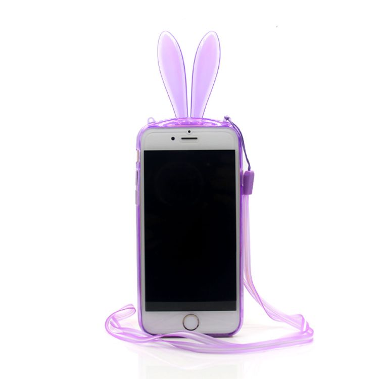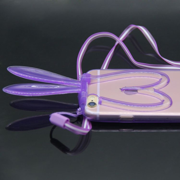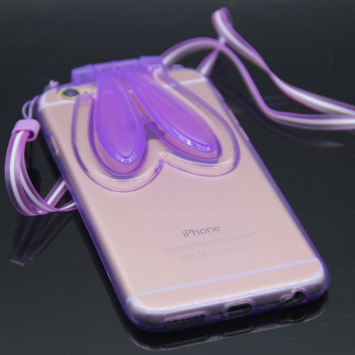 Purple 3D Rabbit Ear Phone Cover Hang Rope For iphone 5S 6S 6Plus
