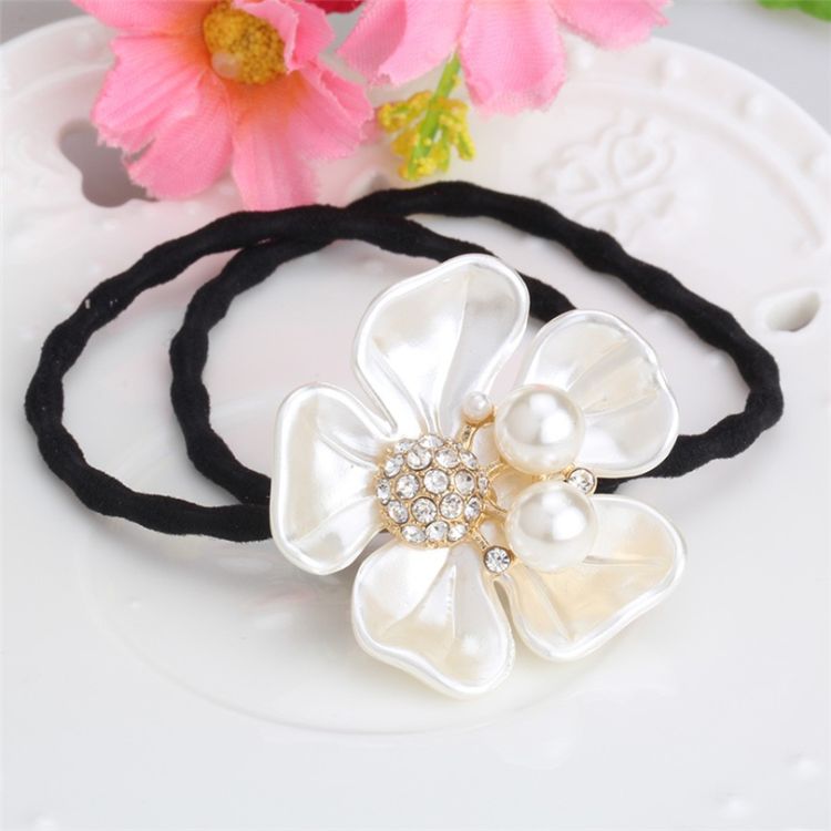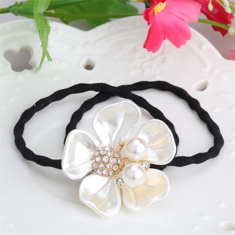 New Korean Women Hair Accessories Rhinestone Tiara Hair Rope Imitation Pearl Shell Flower Elastic Headband Rubber Hair Band