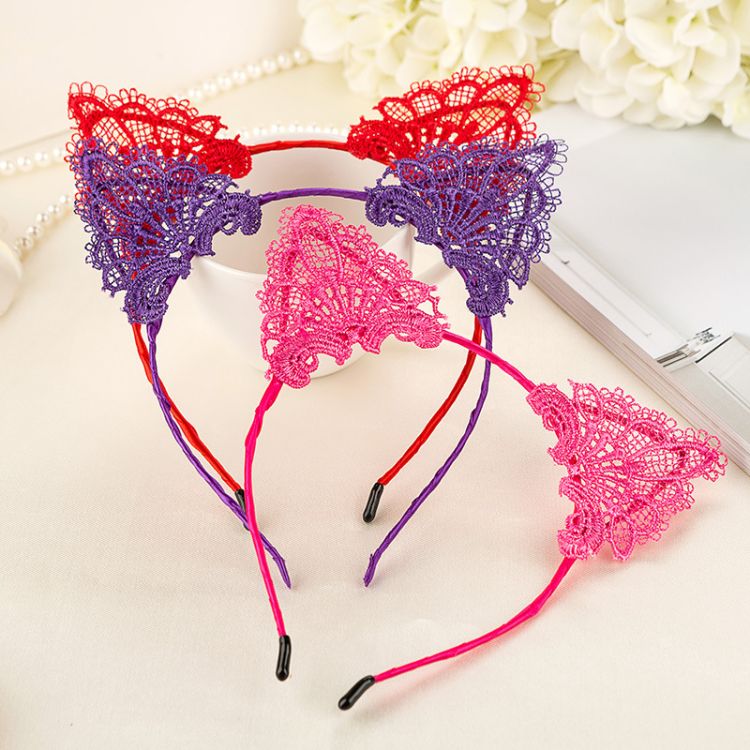 Women Fashion Sexy Lace Cat Ears Headband Portrait Style Hair Hoop Hair Accessories