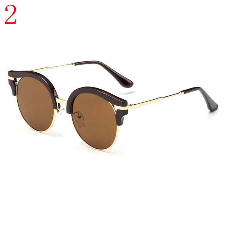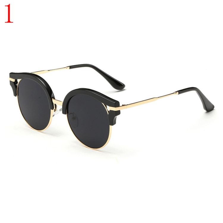 yuvarlak oculos Round Sunglasses Alloy Half Frame Female gothic