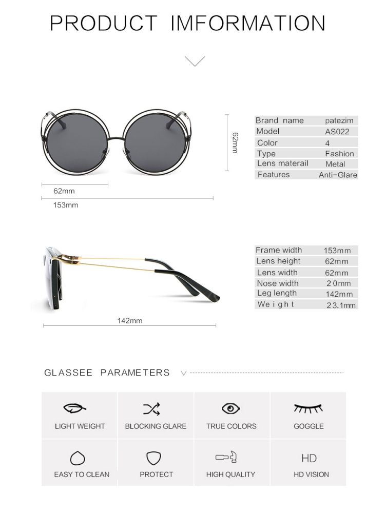 Oculos de sol Round Sunglasses Elegant Shades Oversized