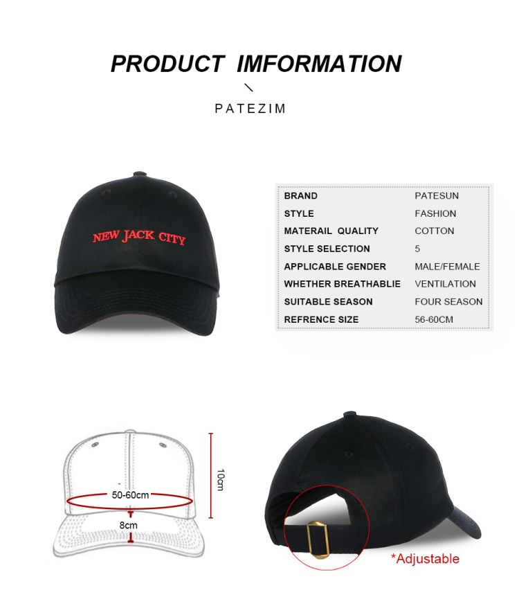 Jack City Embroidery Baseball Cap Spring Summer Adjustable Letters Autumn winter