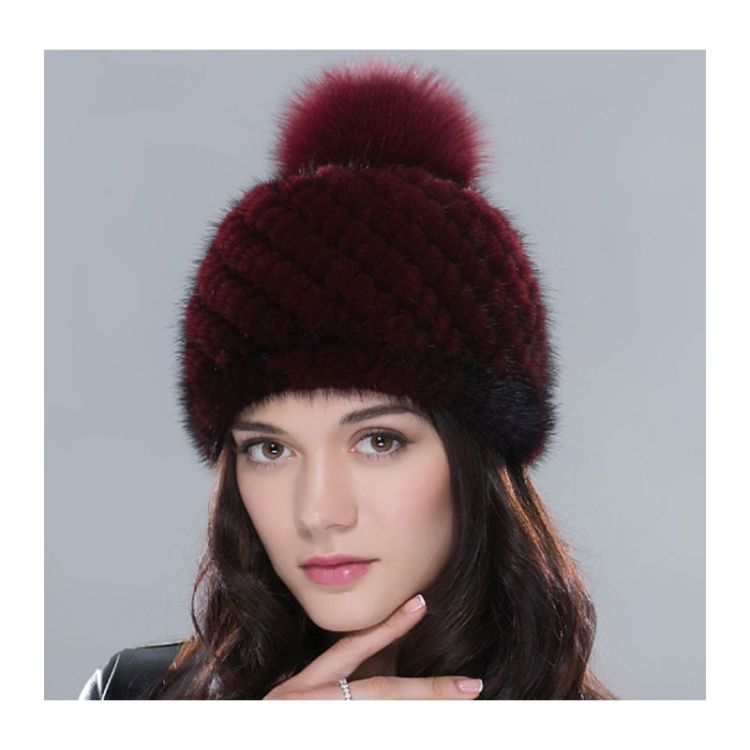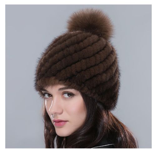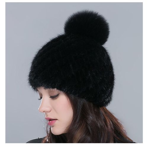Hot sale real mink real mink for women winter knitted mink fur beanies cap with fox fur pom poms 2015 brand new thick female caple cap
