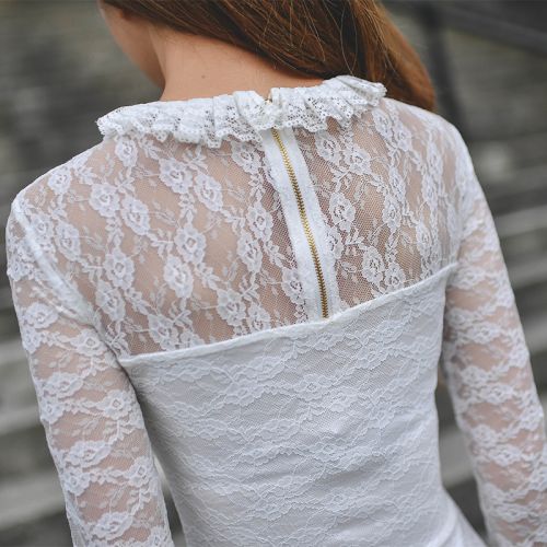 Clothing style details: Stand Collar; Lace