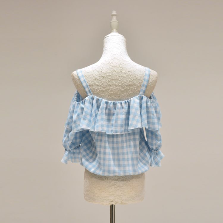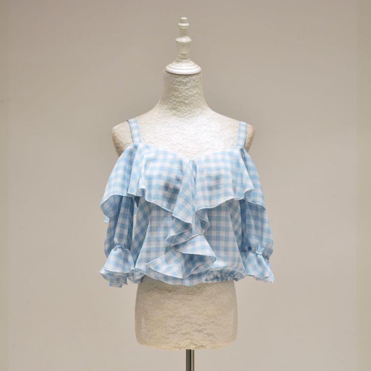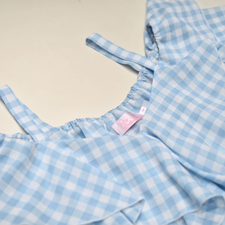 Clothing style details: plaid / straps