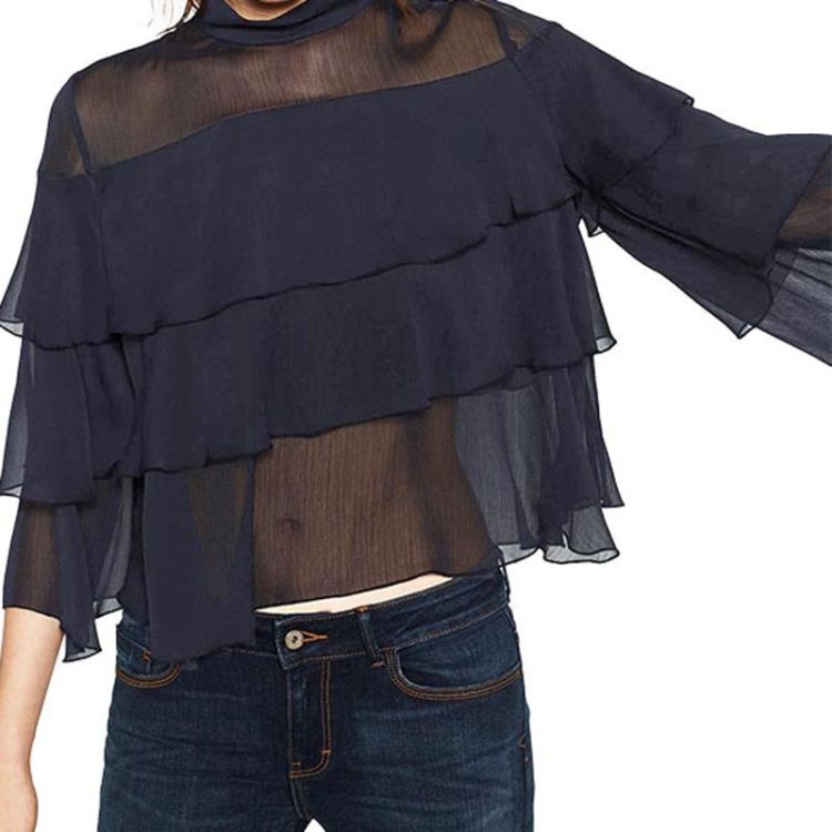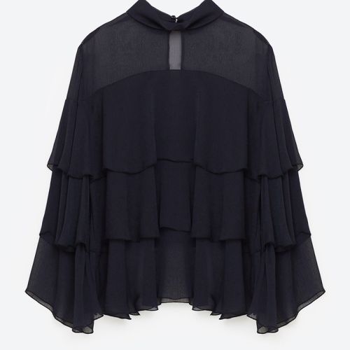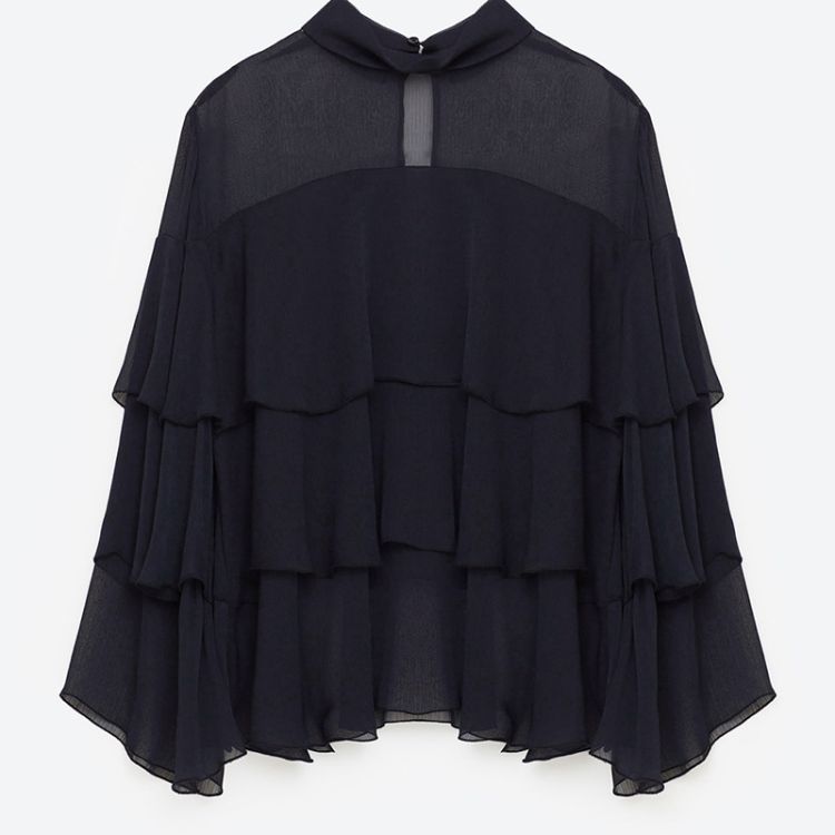 2016 Autumn Fashion Sweet Ruffles Perspective Gauze Chiffon Shirt