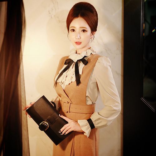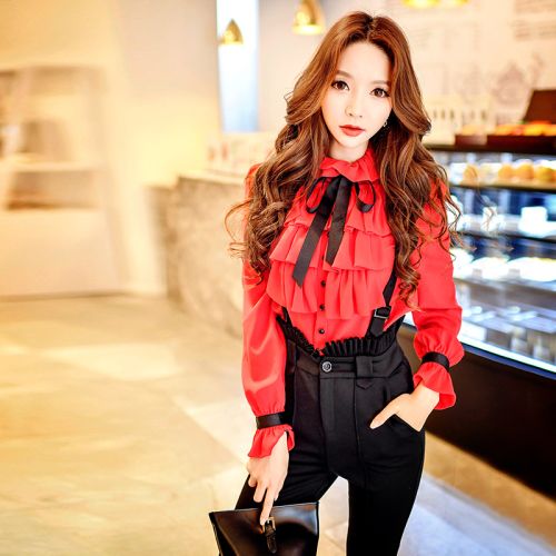Clothing style details: Bow;Ruffle;Pleated