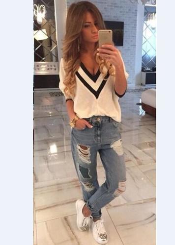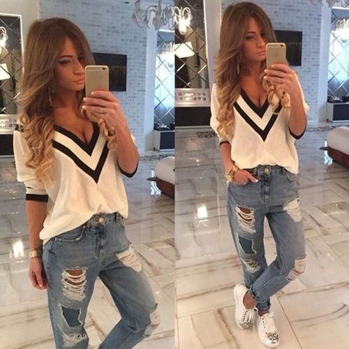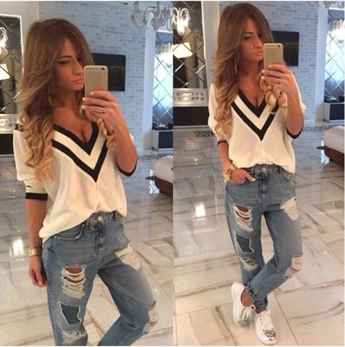 Summer Women New Fashion V Neck Blouse