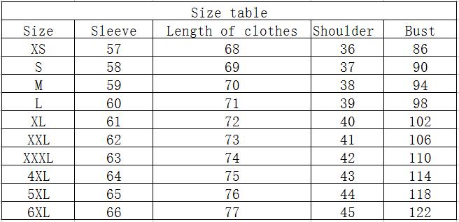 Size: XS, S, M, L, XL, XXL, XXXL, 4XL, 5XL, 6XL,