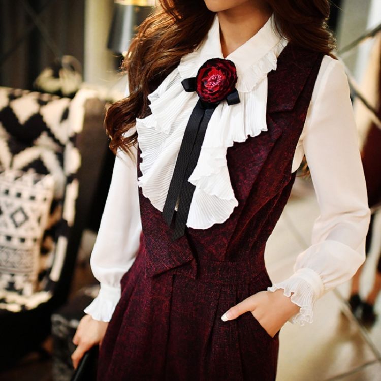 Clothing style details: Bow;Ruffle;Pleated
