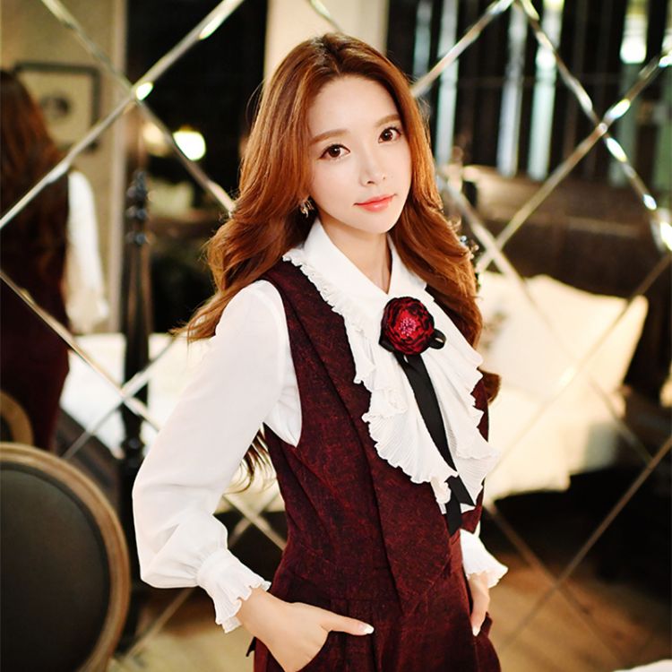 Product Name:Women Ruffle Lapel Neck Long Sleeve Shirt Vintage / Formal Blouse
