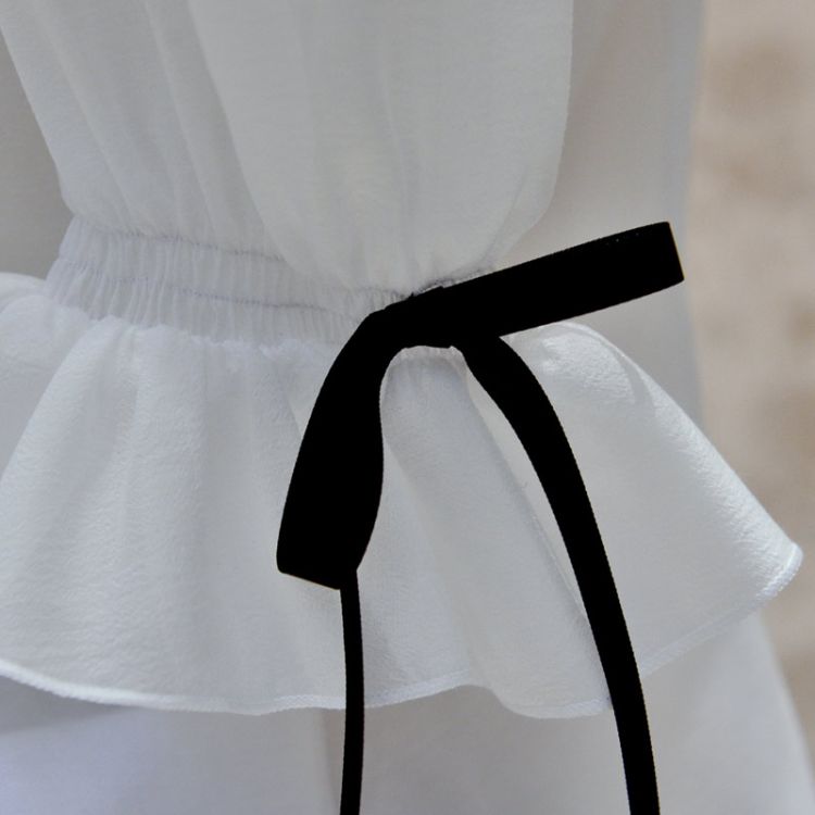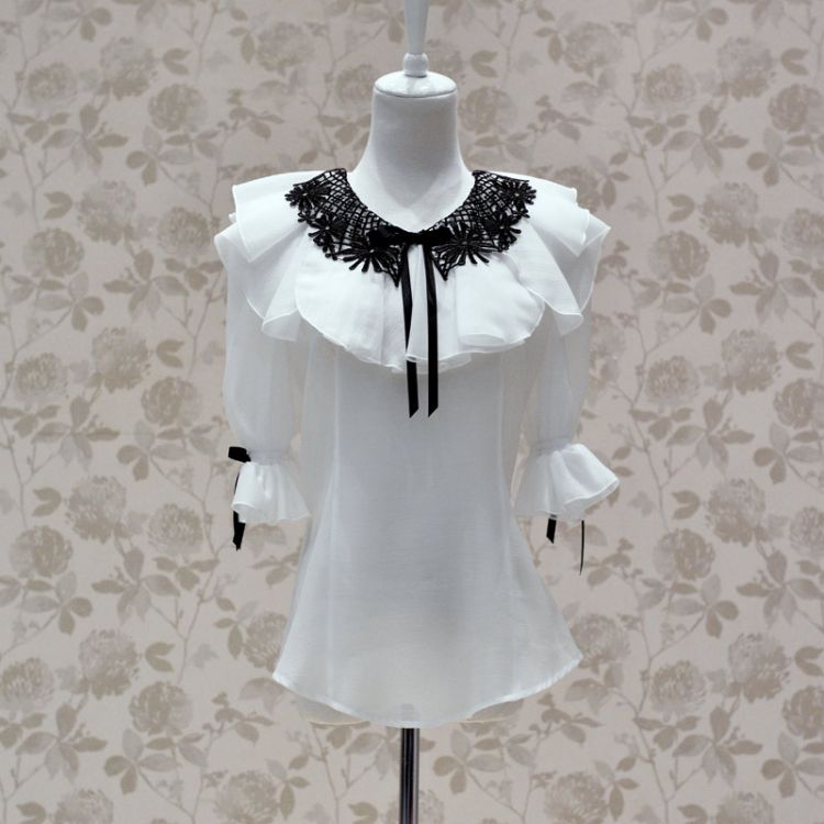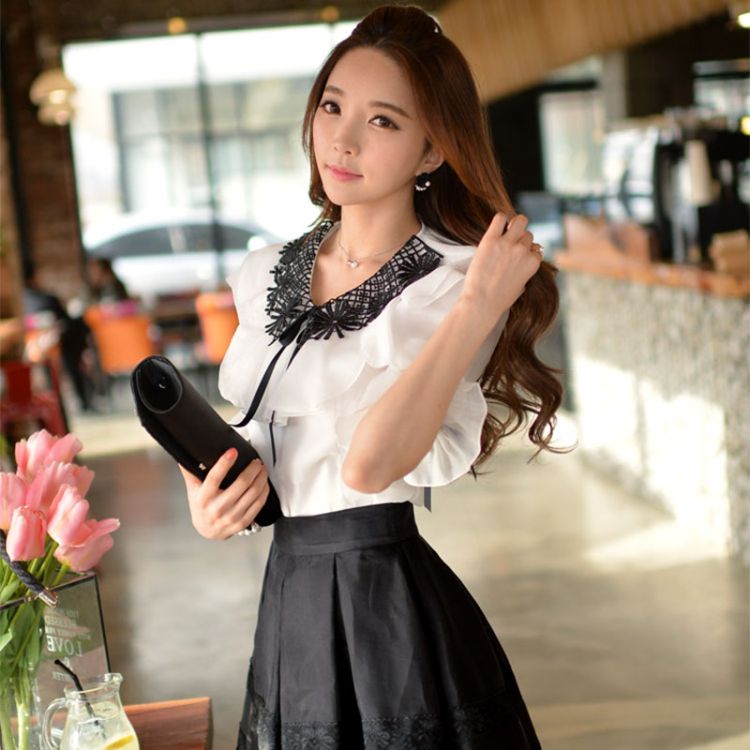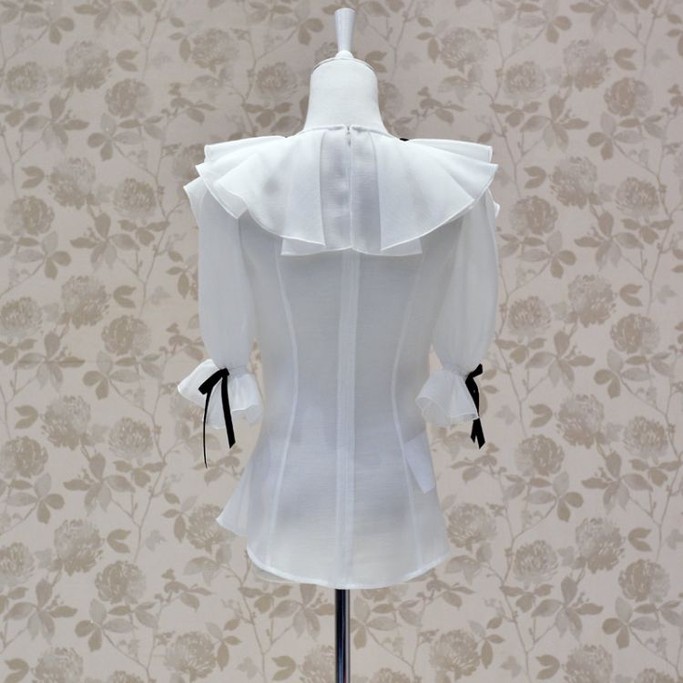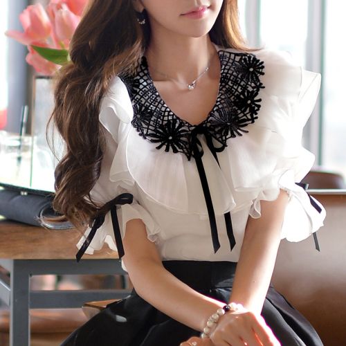 Product Name: Women Ruffle Round Collar Short Puff Sleeve Shirt Vintage / Casaul / Bow Solid Flower Blouses