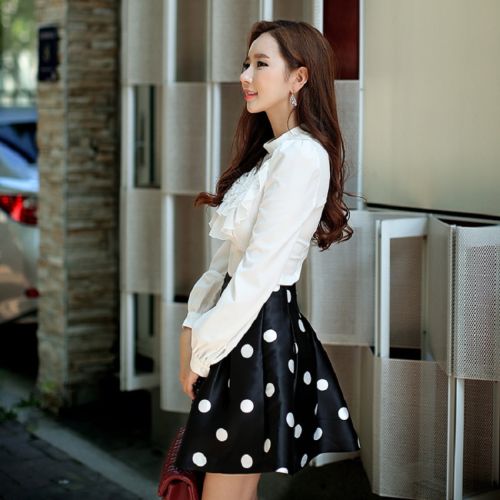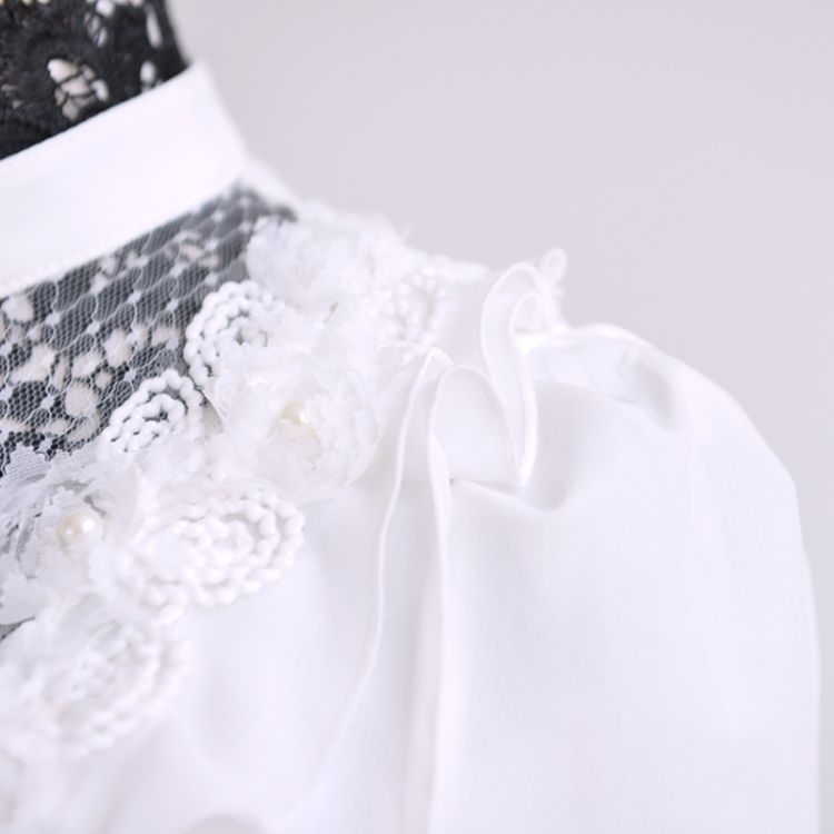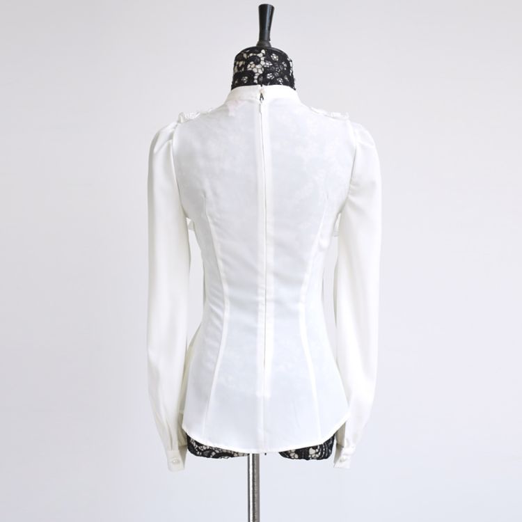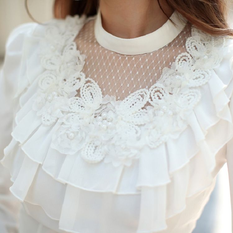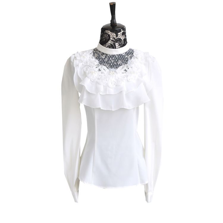 Product Name: Women Stand Collar Pearl Ruffle Puff Long Sleeve Slim Shirt Work / Formal / OLs Blouses
