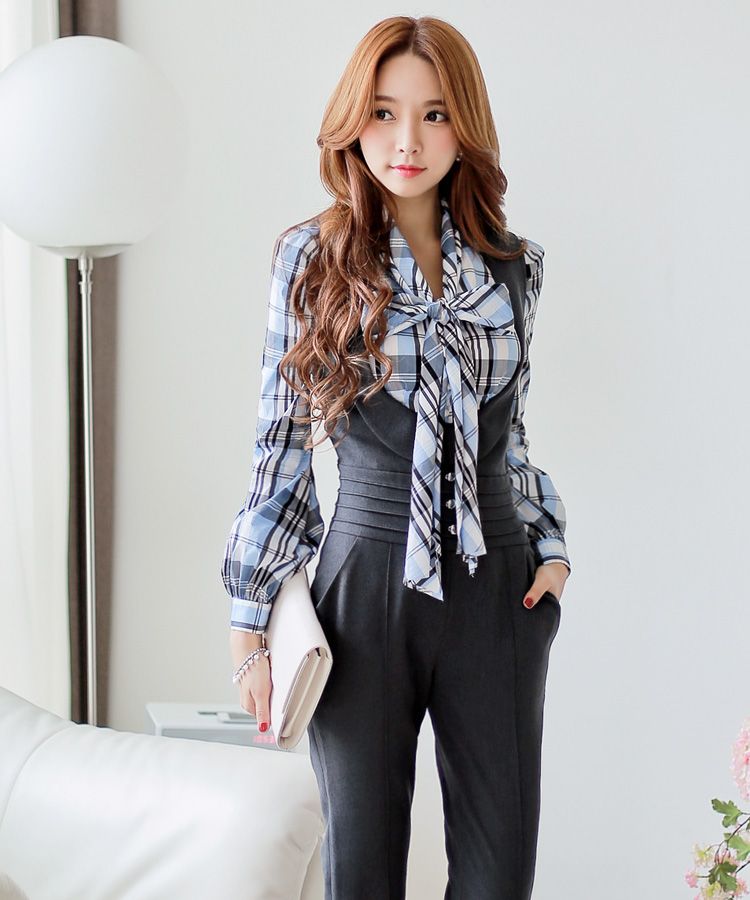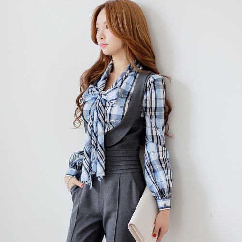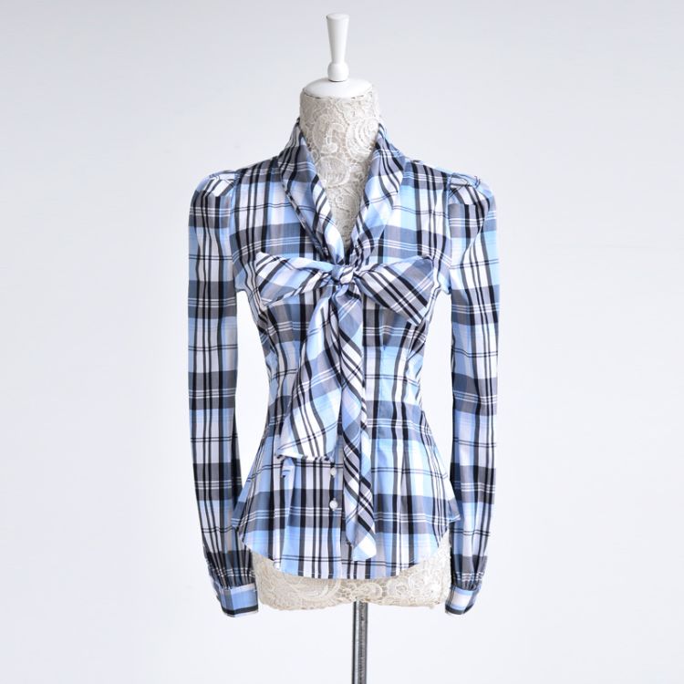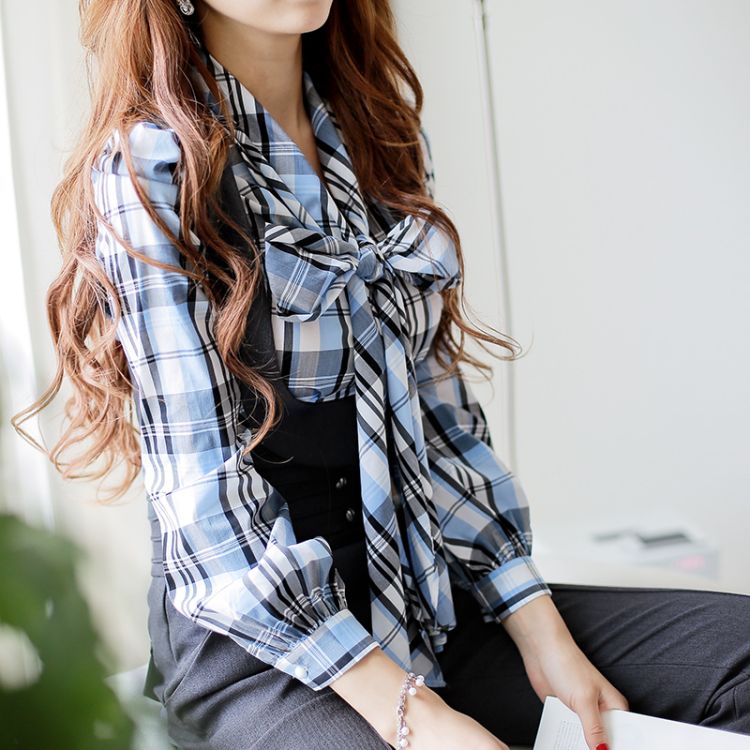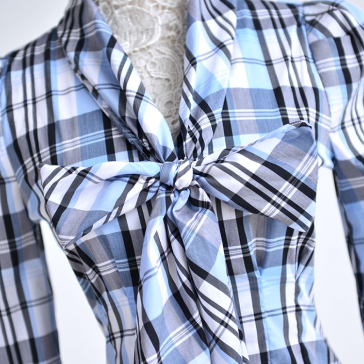 Product Name: Women Plaid Print Bow Neck Long Sleeve Shirt Work / Formal / OLs Dating Blouses