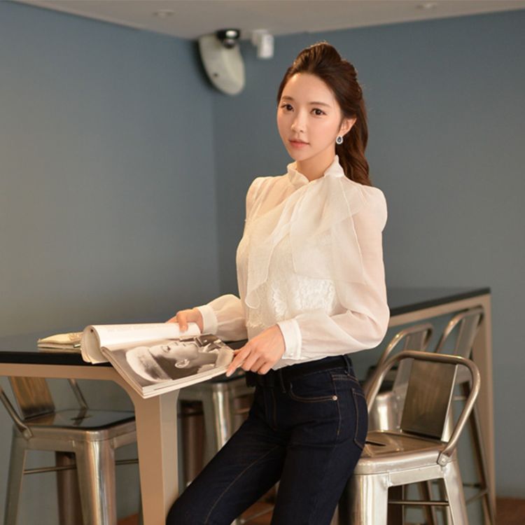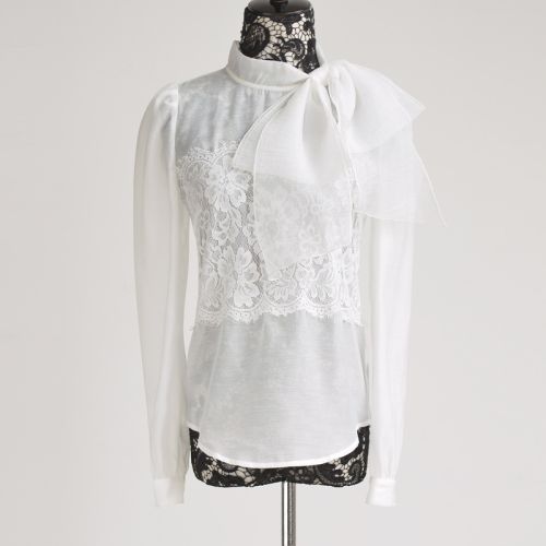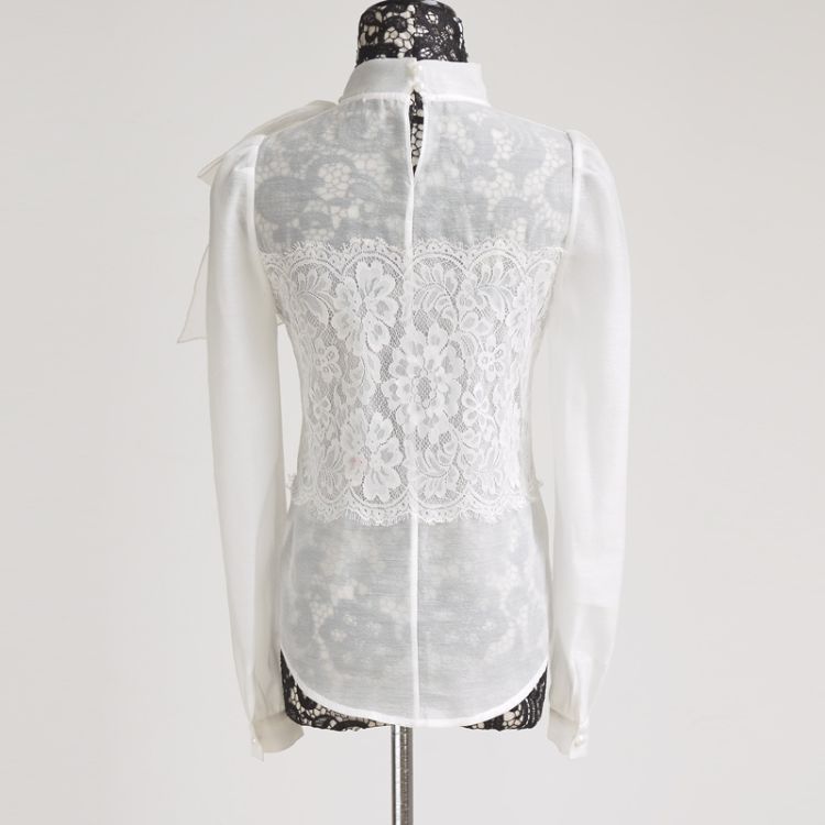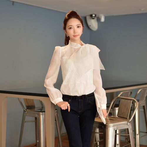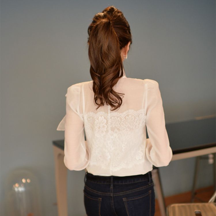Product Name: Women Lace Puff Long Sleeve Shirt Bow Sexy / Vintage / OLs Blouses