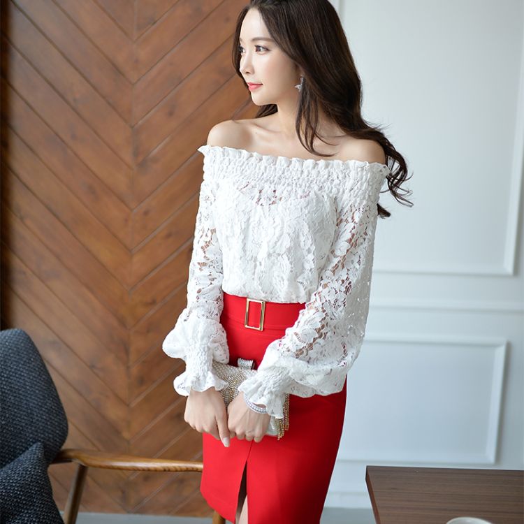 Product Name: Women Off Shoulder Lace Long Sleeve Blouse Holiday / Dating / Party Shirts