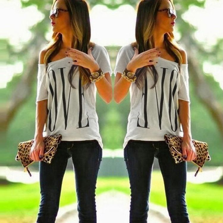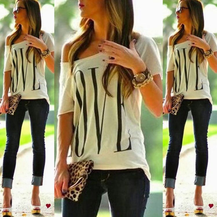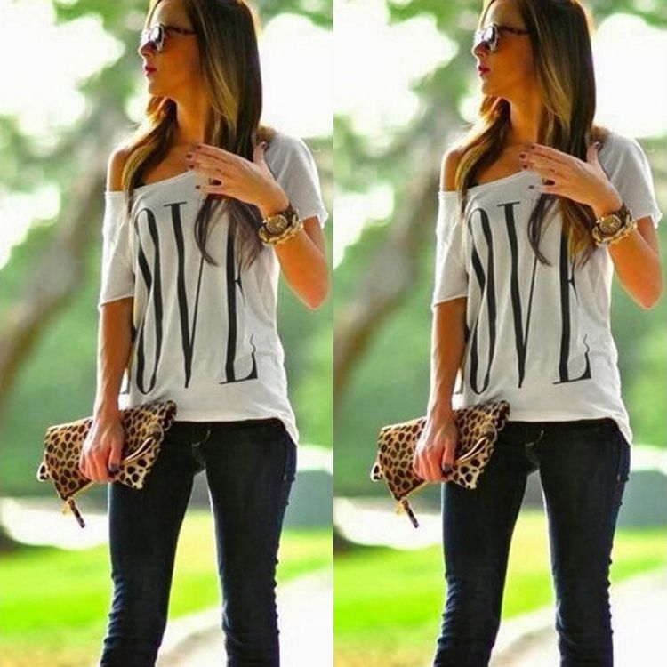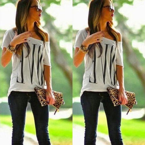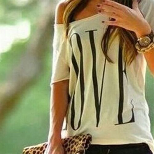 Feature: Sexy New Fashion Women's Vintage Short Sleeve Casual Tops T-Shirt Blouse One Shoulder White.hite.