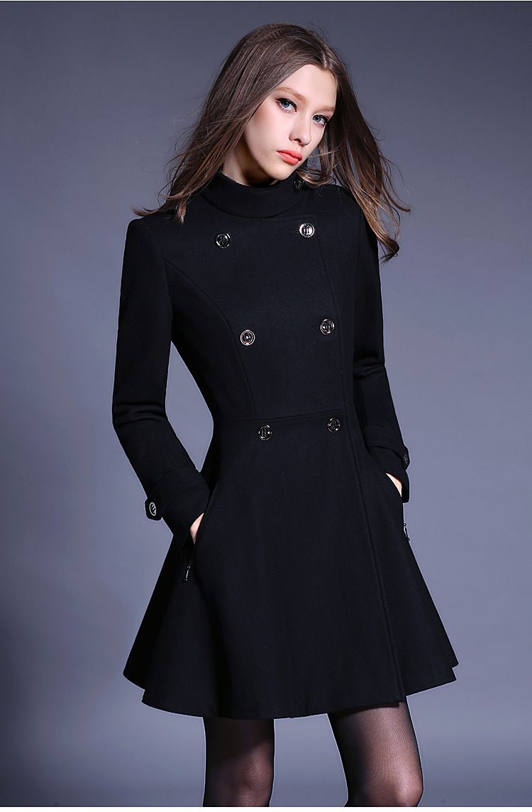 New Winter Women Coat Double Woolen Long Wool Slim Waist