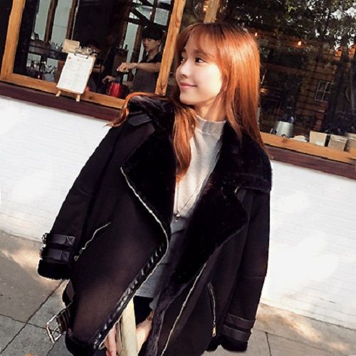 Winter Women Coat Casual Belted Leather Jacket Fur Loose Casual