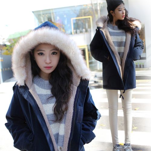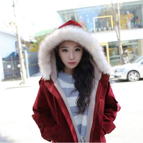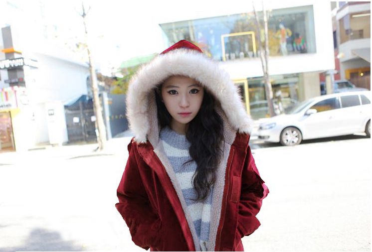 Winter Jacket Women Thickened Hooded Collar Coat Big Girls Long