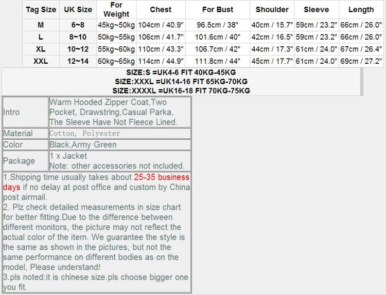 Material:Cotton and PolyesterPackage:1 piece jacket,other accessories are not included!The top pocket is a functional pocket!Please kindly refer to the following size chart!