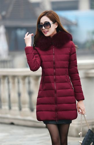 Women Winter Fur Collar Down Cotton Coat Hooded Jacket Slim Long Parka Outwear