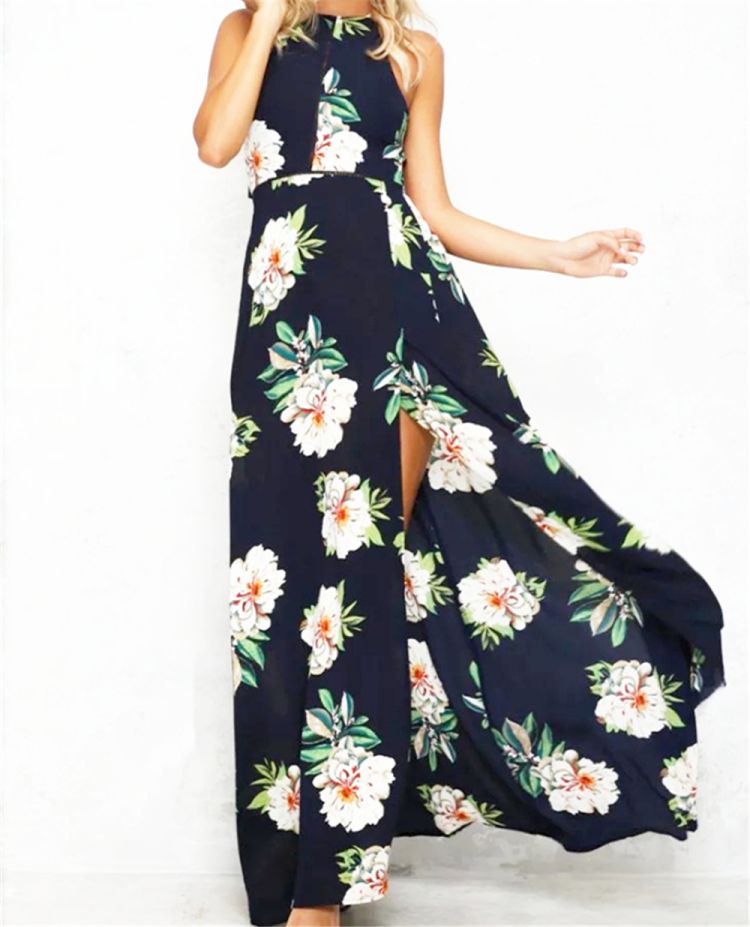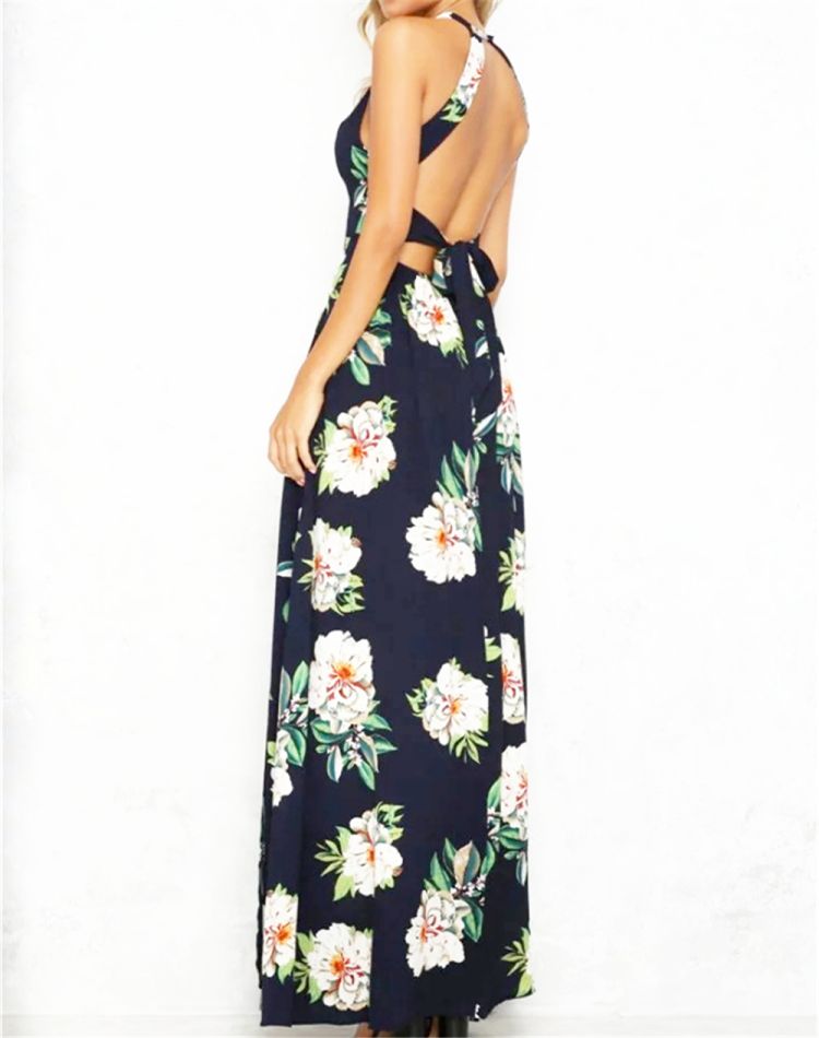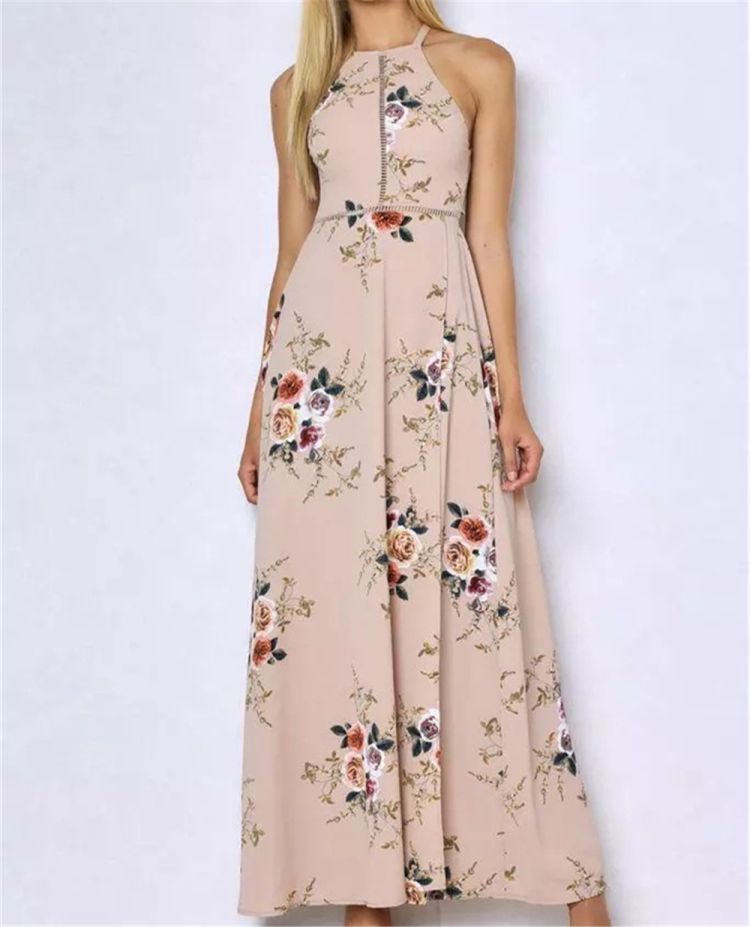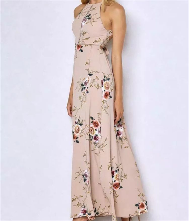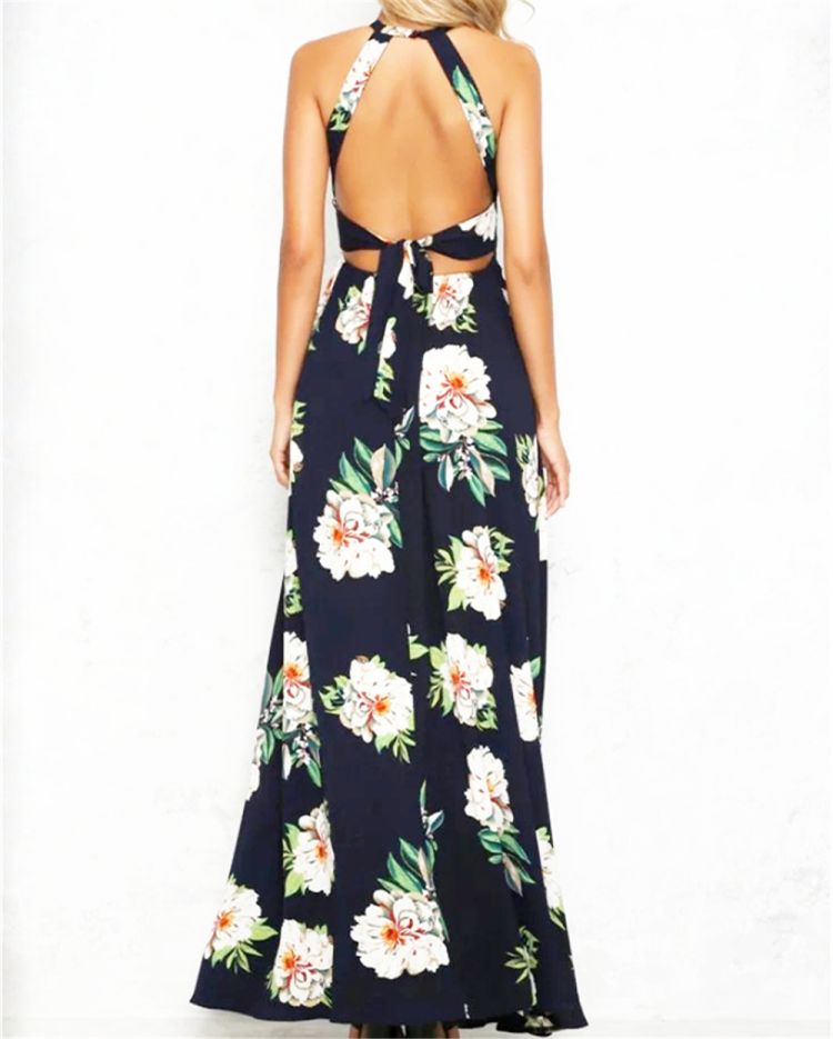 Sleeveless, halter neck, backless, zipper back, maxi dress