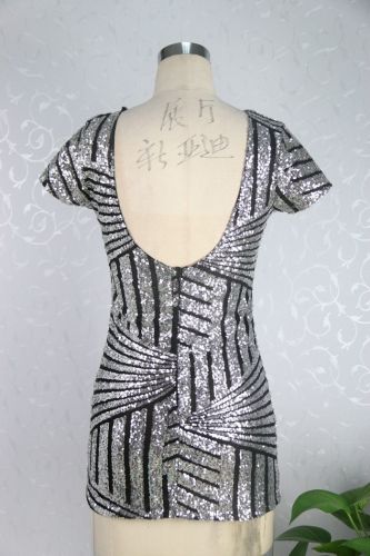 Women's Sexy Sheath Dress Club Dress Striped Round Neck Backless