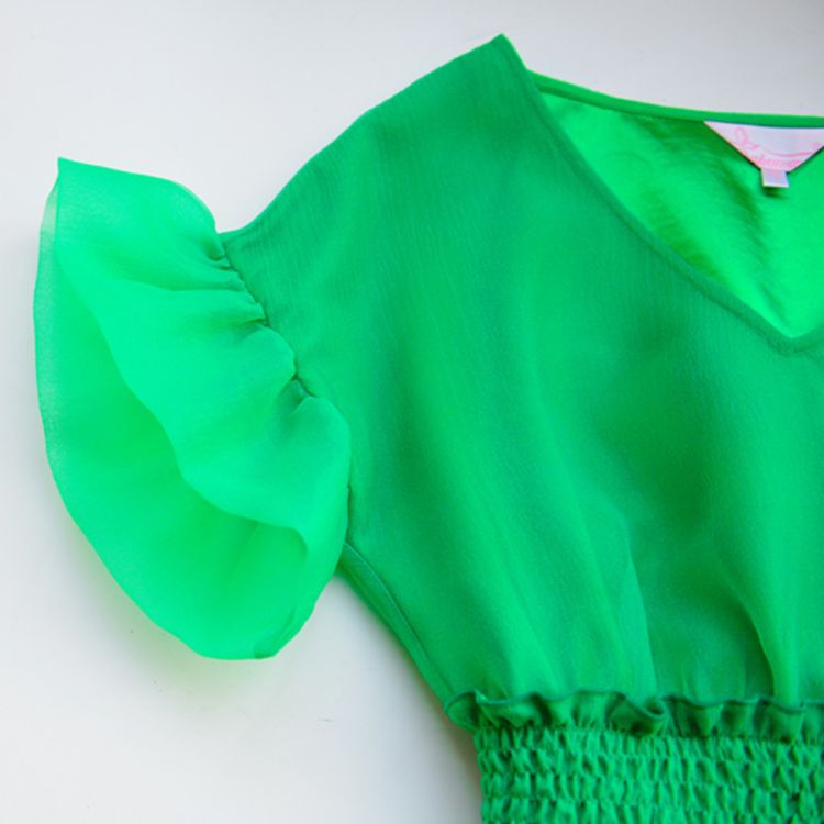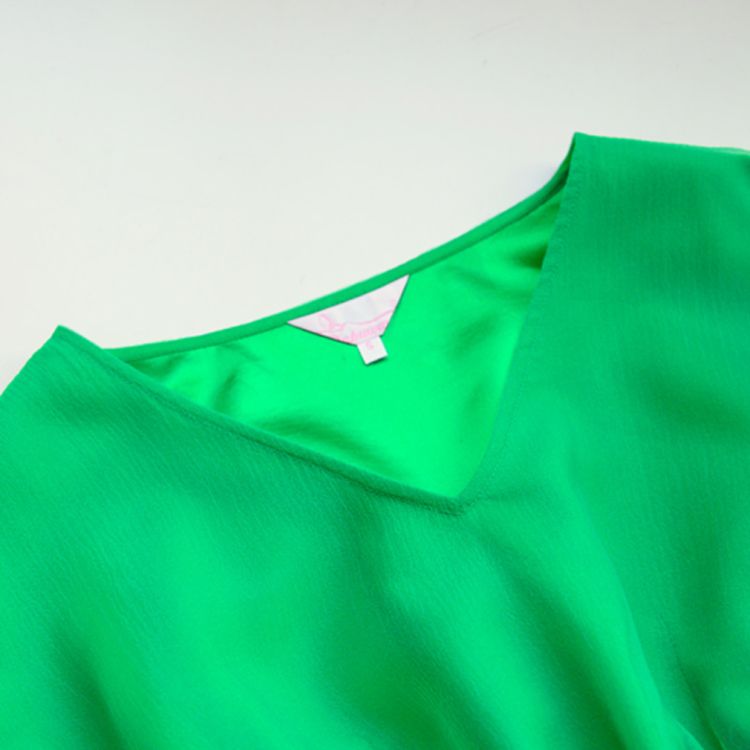 Clothing style details: Pullover/Ruffles sleeve/V-neck/Pleated