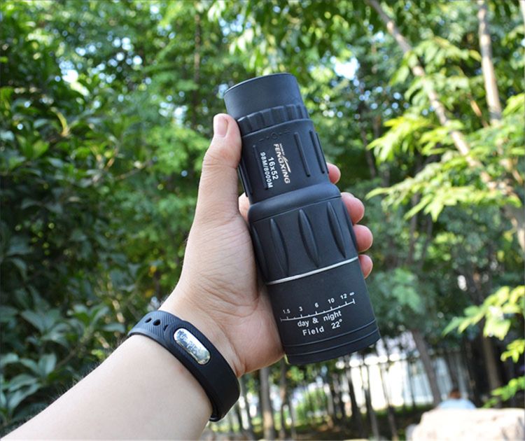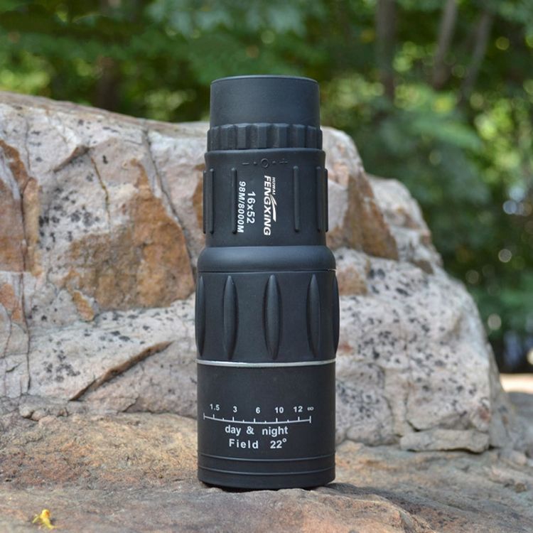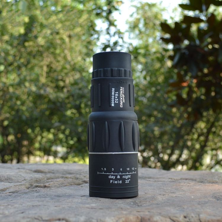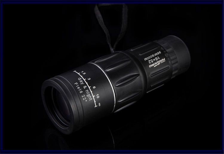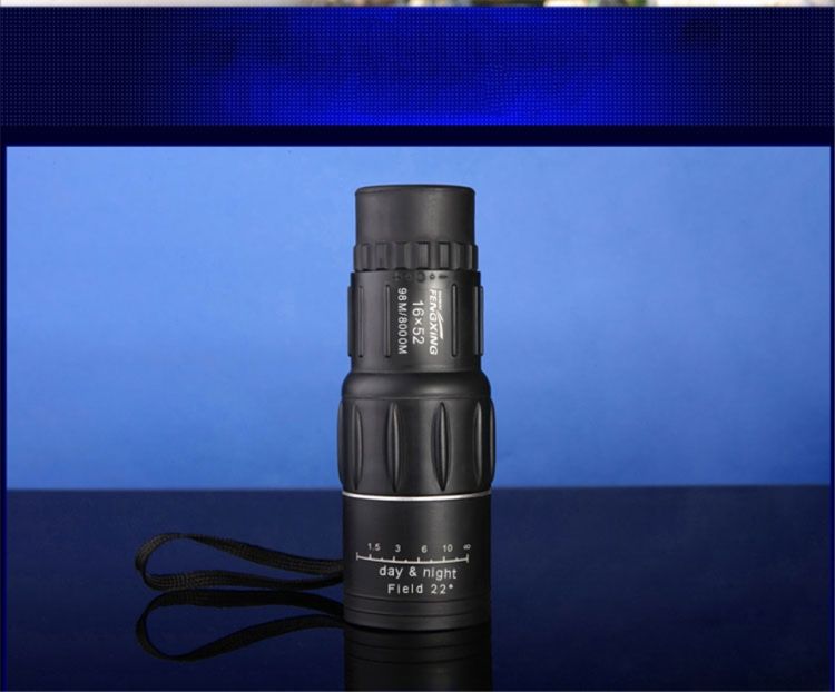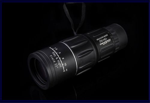 This monocular offers a 16x magnification and a 52mm objective diameter.