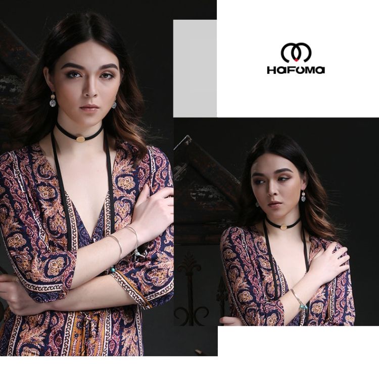 【HAFUMA Necklace】High Quality Explosion Necklace Round Alloy Burn Gold Retro Korean Velvet Necklace Europe and American