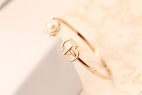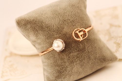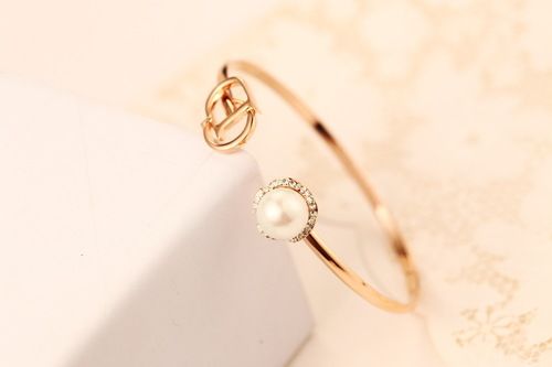 【HAFUMA bracelet】Fashion alphabet crystal pearl opening bracelet rose golden luxury shining bracelet