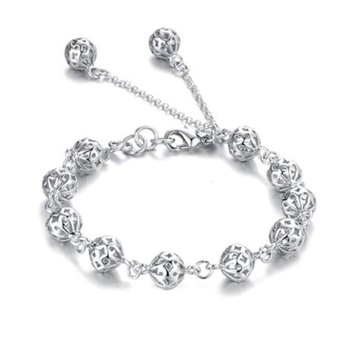 This is a metallic bracelet with jointed carved balls design.